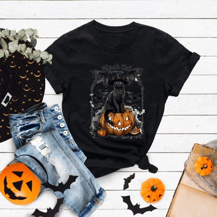 Black Cat The Wicked Ones With Bats Halloween T-Shirts